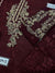 This 3-piece unstitched chiffon suit in a royal maroon shade is adorned with exquisite adda work, detailed embroidery, and delicate sequence embellishments — a timeless outfit ideal for weddings, festive evenings, or formal gatherings.